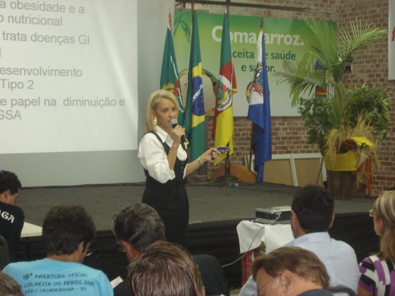 O rápido avanço de produtos a base de trigo preocupa a nutricionista Ana Laura Guimarães. Em palestra nesta sexta-feira (29), durante a 18ª Abertura da Colheita do Arroz, Ana Laura afirmou que a mudança no hábito alimentar da população pode aumentar a incidência de doenças relacionadas ao intestino e a obesidade. Conforme ela, o arroz continua sendo a melhor opção para a mesa dos consumidores, já que dispõe dos principais nutrientes necessários no dia-a-dia e o melhor de tudo: não engorda. Com 40 gramas de arroz, que se transformam em 90 gramas após o cozimento, uma pessoa terá ingerido cerca de 100 calorias. Ana Laura explica que o arroz diminui o colesterol, a glicose e melhora a absorção de vitaminas do complexo B, além de prevenir osteoporose. A nutricionista esclarece que o trigo consumido no Brasil não é produzido no país, sendo que a metade é importada do Mercosul. Um dos derivados do arroz, o farelo, por exemplo, pode ser utilizado no café da manhã. “O farelo tem alto teor de fibras, ajuda no funcionamento do intestino e no combate a doenças crônicas”, afirma. Com relação à queda no consumo de arroz, Ana Laura ressalta que a pressa está colaborando para o aumento de doenças e uma alimentação errada. “É mais simples comer um fast food, mas a população ainda não está consciente de que isso terá conseqüências no futuro”, diz, falando sobre o aumento da obesidade no mundo. Os alimentos produzidos com o arroz proporcionam dieta diária com mais nutrientes, especialmente importante nas fases de desenvolvimento e crescimento. Entre os benefícios para a saúde, o arroz não contém glúten e é importante fonte de minerais e vitaminas. Além disso, auxilia na prevenção de doenças do sistema digestivo, do coração e no tratamento de diabetes.
