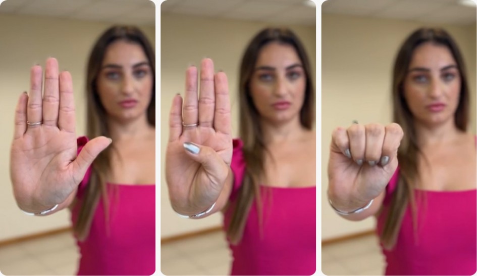 - Fechar os demais dedos sobre o polegar, simbolizando aprisionamento ou pedido de ajuda
