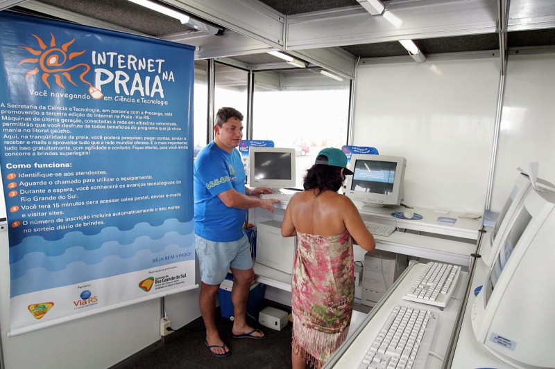 Os veranistas de Capão da Canoa terão acesso gratuito à internet durante todo o final de semana. A unidade móvel do Via/RS oferece serviço itinerante do Internet na Praia - Você Navegando em Ciência e Tecnologia, em parceria com a Procergs e o Senac. Ele está à disposição dos usuários no estacionamento da prefeitura, na avenida Paraguassú das 11h às 19h. Segundo o secretário de Ciência e Tecnologia, Kalil Sehbe, o projeto, que já está em sua terceira edição, é um dos grandes programas do Governo do Estado no Verão Gaúcho 2005, com a inclusão digital e social. Oferecemos ao veranista, turista e morador local acesso à internet gratuitamente. O serviço faz com que a pessoa possa pagar contas, verificar e-mails e tornar o seu veraneio o mais cômodo possível, explica. Os postos de Tramandaí, Atlântida e Torres funcionarão também na segunda-feira (7) ? dia de manutenção dos equipamentos, em razão do feriadão. Desde o início da atividade, em 3 de janeiro, até o momento, mais de 7 mil pessoas já procuraram o serviço no Litoral. Temos a expectativa de atingir 20 mil acessos nesta temporada, avalia o secretário. Sehbe afirma, ainda, que os turistas estrangeiros -responsáveis por 80% dos acessos em Torres - ficam encantados e elogiam o serviço do Estado que pode facilitar o seu veraneio.