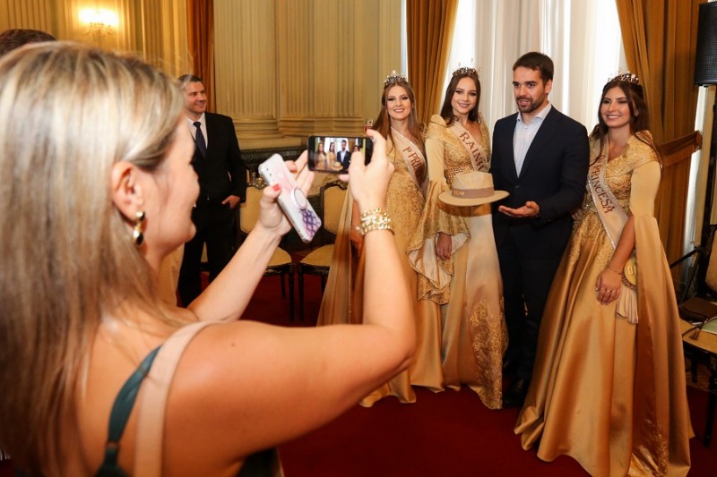 Dez comitivas de diferentes regiões do estado estiveram no Salão Negrinho do Pastoreio, no Palácio Piratini, na tarde desta quarta-feira (3), para convidar o governador Eduardo Leite para eventos que ocorrem nas próximas semanas.