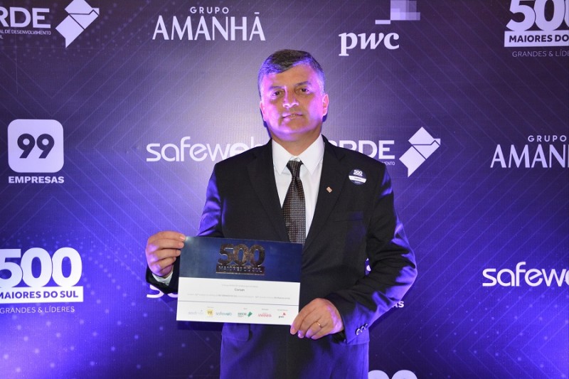 O diretor Administrativo da Companhia Riograndense de Saneamento (Corsan), Alberto Carlos Paganella, representou a empresa na cerimônia de entrega da premiação 500 Maiores do Sul, que ocorreu na noite desta terça-feira (20), na sede da Fiergs, em Porto Alegre. A Corsan obteve novamente posição de destaque nesse que é o maior ranking regional de empresas do Brasil.