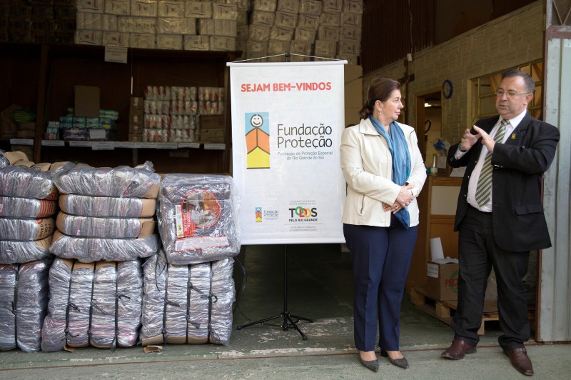 O presidente da FPE, José Luís Barbosa, recebeu 110 cobertores, que serão distribuídos entre os nove abrigos administrados pela instituição. Os materiais foram arrecadados em jantar beneficente realizado pela Confraria da Sauna e Spa Porto Alegre, e a entrega foi feita no almoxarifado central da FPE, na Fundação de Atendimento Sócio-Educativo (Fase), em Porto Alegre.