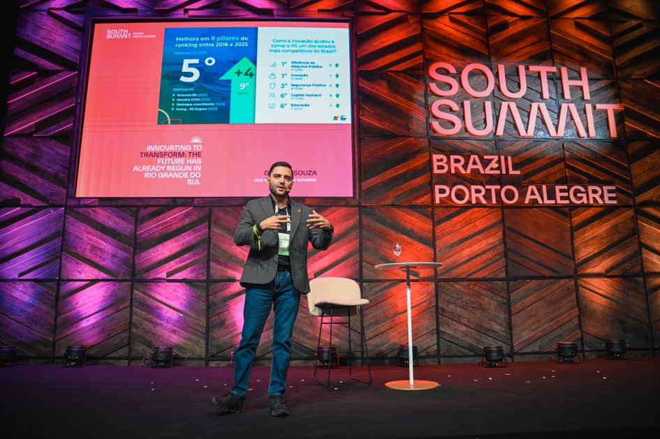 O vice-governador Gabriel Souza, que coordena o South Summit Brazil (SSB) por meio do Gabinete de Projetos Especiais (GPE), apresentou, nesta quinta-feira (26/03), no Demo Stage do SBB, o keynote “Inovar para transformar: o futuro já começou no Rio Grande do Sul”. Gabriel falou sobre as premissas da política de inovação no Rio Grande do Sul.