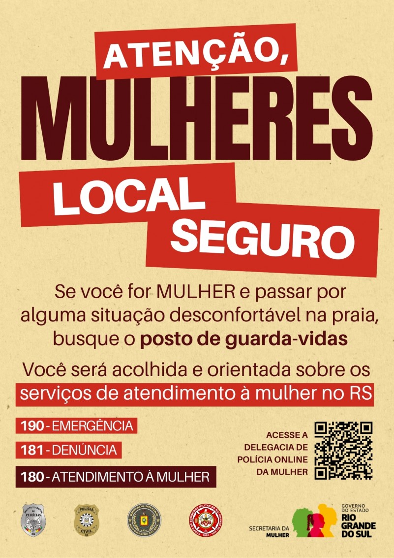 A iniciativa da Secretaria da Mulher (SDM), em parceria com a Secretaria da Segurança Pública do Estado (SSP) e o Comando Geral do Corpo de Bombeiros Militar (CBMRS), abrange praias, lagoas e balneários.