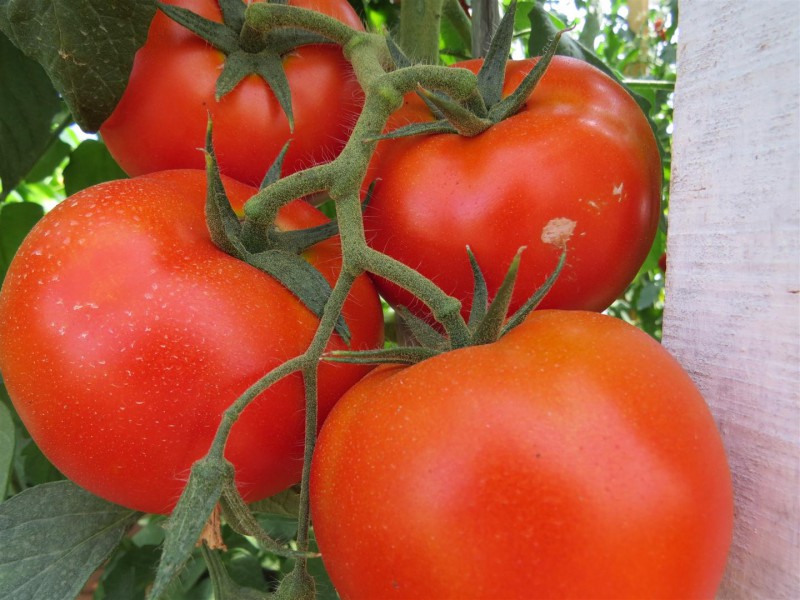 Na estufa, o presidente da Emater/RS comprovou a eficácia do sistema de tutoramento, nesse caso, usado na produção de tomates. À medida que o tomateiro vai se desenvolvendo, a planta é apoiada em fios de arame presos nas laterais, em estacas de madeira.
