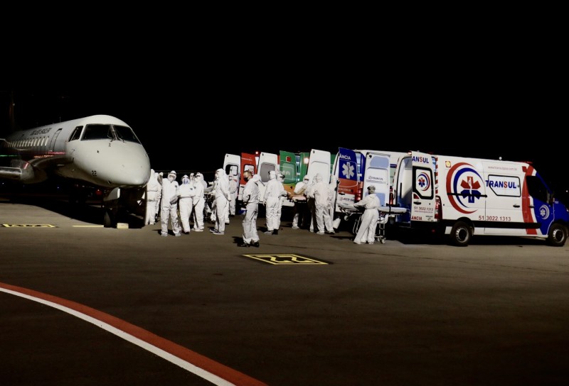 Um avião da Força Aérea Brasileira (FAB) trouxe os manauaras ao Estado, e uma frota de ambulâncias de suporte avançado e de suporte básico do Serviço de Atendimento Móvel de Urgência (Samu) encaminhou os pacientes para os hospitais, com escolta da Brigada Militar. Eles passaram por uma nova triagem ao pousar e foram imediatamente encaminhados para uma área isolada em cada um dos hospitais, inclusive de outros pacientes Covid-19, por medidas de biossegurança.