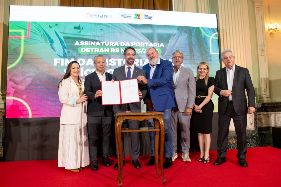 O governador Eduardo Leite anunciou, na manhã desta quarta-feira (10/12), um pacote de ações no registro de veículos que irão simplificar o processo e reduzir custos para o cidadão. As principais novidades foram o fim da vistoria para primeiro emplacamento e a implementação do Registro Nacional de Veículos em Estoque (Renave) Usados RS, com vistoria realizada por meio da Inteligência Artificial para a transferência de usados. As medidas foram detalhadas pela diretora-geral adjunta do DetranRS, Isabel Cristina dos Reis Friski, acompanhada do diretor técnico do órgão, Fábio Pinheiro dos Santos, em ato realizado no Palácio Piratini.