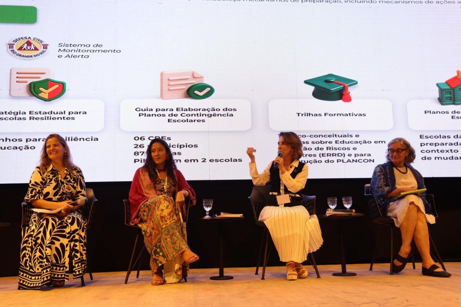 Na parte da tarde, a titular da Seduc participou do painel “Gestão para a resiliência escolar e continuidade da educação”, organizado pelo Instituto Alana, no Espaço da Caixa Cultural. No encontro, Raquel detalhou as ações desenvolvidas pelo Estado durante as enchentes de 2024 e o conjunto de medidas estruturadas no Plancon Escolar. Nesse movimento de prevenção e planejamento, o Plancon Escolar está integrado aos instrumentos de gestão já existentes dentro das escolas estaduais, como o Projeto Político-Pedagógico (PPP) e o Plano Anual de Ações e Metas, tornando-se, assim, uma ferramenta permanente de planejamento no cronograma escolar.
