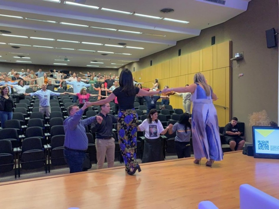 Ao final da atividade, as participantes conduziram uma dinâmica com o público, criando um momento de integração e reflexão sobre o papel do esporte no cotidiano. A proposta simbolizou valores como união, cooperação e trabalho em equipe. Durante a atividade, Carla destacou o conceito que chamou de “elo do esporte”, ao lembrar que a prática esportiva conecta pessoas e demonstra que objetivos são alcançados com mais força quando há colaboração.