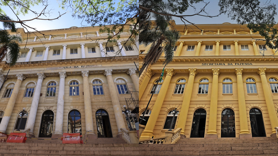 Além da pintura das fachadas, os pórticos também serão renovados. Eles estão voltados para a Sepúlveda e para a Cassiano Nascimento e unem os dois edifícios, dando a impressão, para quem vê de fora, de tratar-se de uma única construção. O restauro do conjunto, iniciado em janeiro de 2024, tem investimento de R$ 8,3 milhões e previsão de término até o final de 2026.