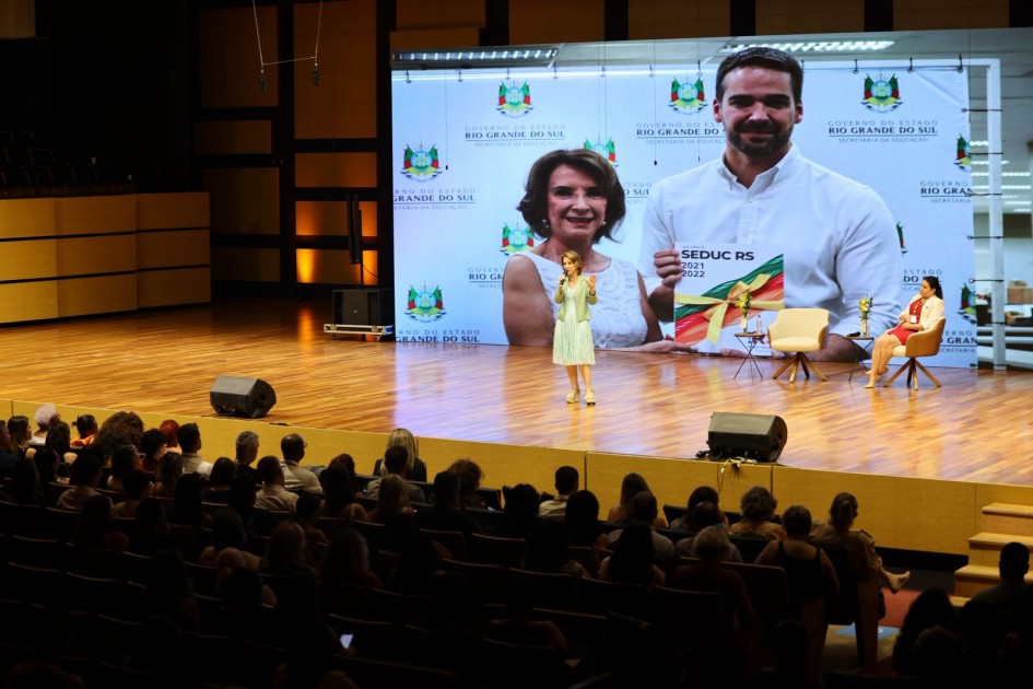 Além disso, em uma prática que se consolidou nas cerimônias da Seduc, o evento teve foco no protagonismo juvenil, sendo conduzido por dois estudantes da Rede Estadual. Eduardo da Silveira de Oliveira, da Escola Estadual de Ensino Médio (EEEM) Lauro Silva Azambuja, de Arambaré, e Ana Beatriz Flach, da EEEM Professor João Germano Imlau, de Erechim, apresentaram todo o roteiro da programação, mantendo a energia e a atenção do público.