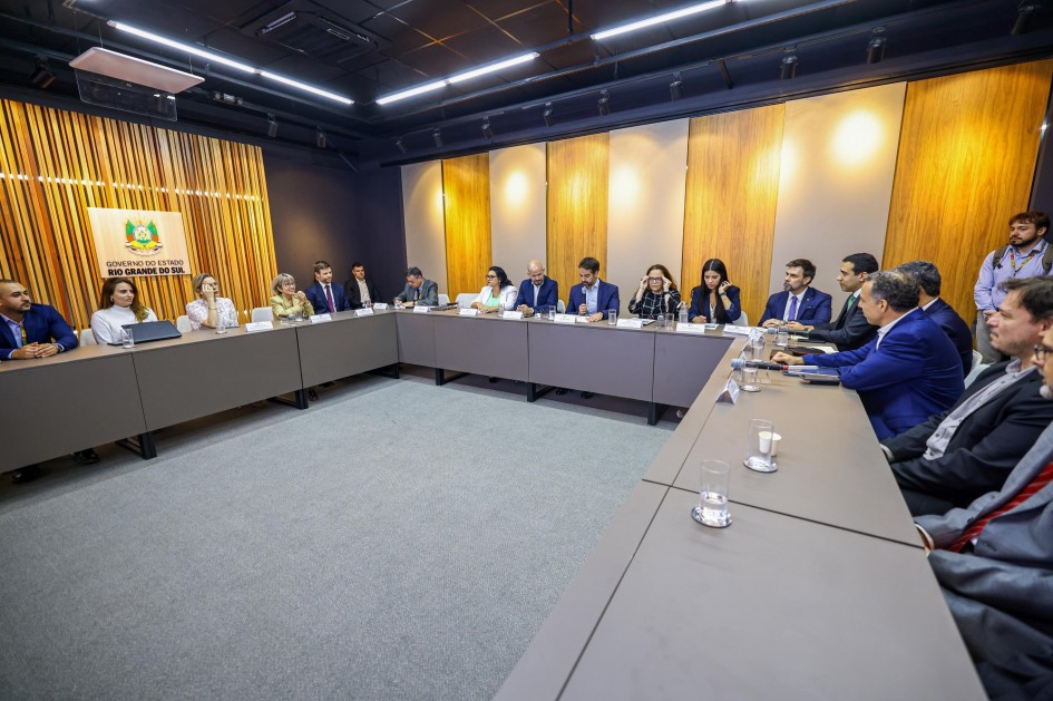 O governador Eduardo Leite deu início ao Projeto Rios – Resiliência, Inovação e Obras para o Futuro do Rio Grande do Sul, nesta segunda-feira (15/2). Uma reunião de trabalho, no Palácio Piratini, com o Banco Nacional de Desenvolvimento Econômico e Social (BNDES), marcou o começo da iniciativa.
