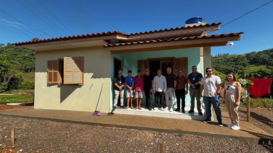 Beneficiadas pelo Programa Porta de Entrada Entidades Rurais, oito famílias de agricultores que perderam suas casas nas enchentes estão vivendo nas novas moradias na comunidade rural de Pinhal. O secretário Carlos Gomes visitou moradores. "Conhecer o seu Nilson aqui na zona rural encheu nosso dia de satisfação. Ver a felicidade em seus olhos de saber que agora está numa casa digna e segura, comprova que o governo do estado cumpre o preceito da habitação como direito básico", afirmou.