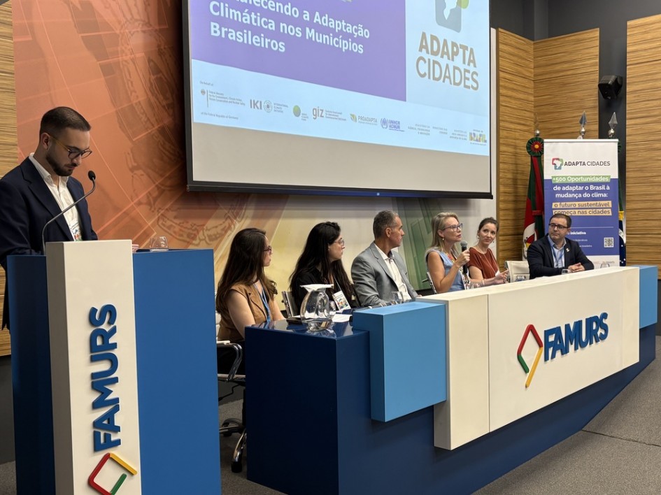 Autoridades e técnicos nacionais também participaram da abertura do evento em Porto Alegre, como o coordenador-geral do Departamento de Políticas para Adaptação e Resiliência à Mudança do Clima, Lincoln Alves; a representante da Agência da Organização das Nações Unidas para Refugiados, Pollyana de Lima; além das assessoras técnicas do Adaptacidades Isadora Buchala e Lucie Duez.