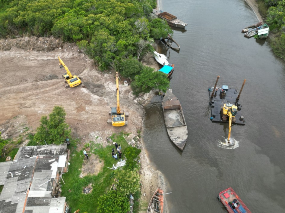 Antes do início das operações, a empresa responsável estruturou a área destinada ao posicionamento das máquinas e ao depósito temporário dos sedimentos retirados. O material será posteriormente encaminhado para um aterro, assegurando a destinação ambientalmente adequada e evitando novos impactos.