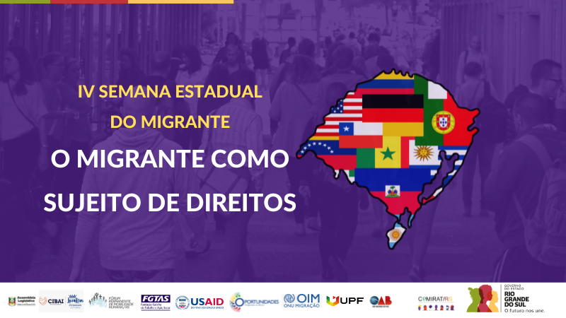 O Estado do Rio Grande do Sul celebra, entre os dias 19 e 23 de junho, a 4ª Semana Estadual do Migrante, estimulando o debate sobre o migrante como sujeito de direitos. As ações são promovidas pela Secretaria de Justiça, Cidadania e Direitos Humanos (SJCDH), através do Comitê de Atenção a Migrantes, Refugiados, Apátridas e Vítimas de Tráfico de Pessoas do Rio Grande do Sul (Comirat/RS).