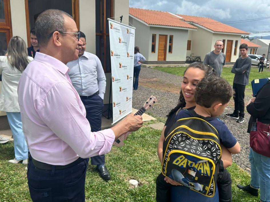 O governo do Estado, por meio da Secretaria de Habitação e Regularização Fundiária (Sehab), entregou 18 casas definitivas em Taquara e Parobé, no Vale do Paranhana, por meio do Programa A Casa é Sua Município Resiliência. O evento ocorreu neste domingo (19/10) e contou com a presença do titular da Sehab, Carlos Gomes.