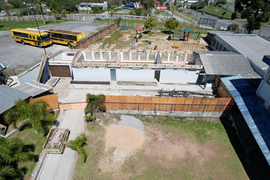- Obra: recuperação das esquadrias, da cobertura, das impermeabilizações, das instalações elétricas, dos pisos, das paredes, dos forros, das pinturas, dos muros, das telas e do acesso escolar