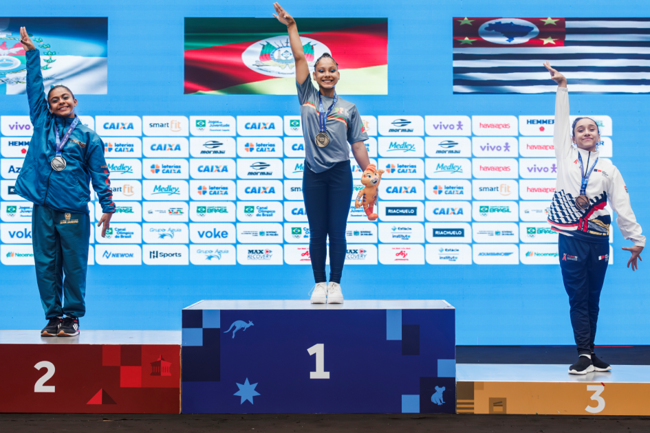 A ginasta Francine de Oliveira representou o RS nos Jogos da Juventude de 2024 e 2025, conquistando 12 medalhas. “Foi muito bom contar com o apoio da Secretaria do Esporte e Lazer para alcançar o meu melhor desempenho e ser campeã representando o Estado”, afirma.