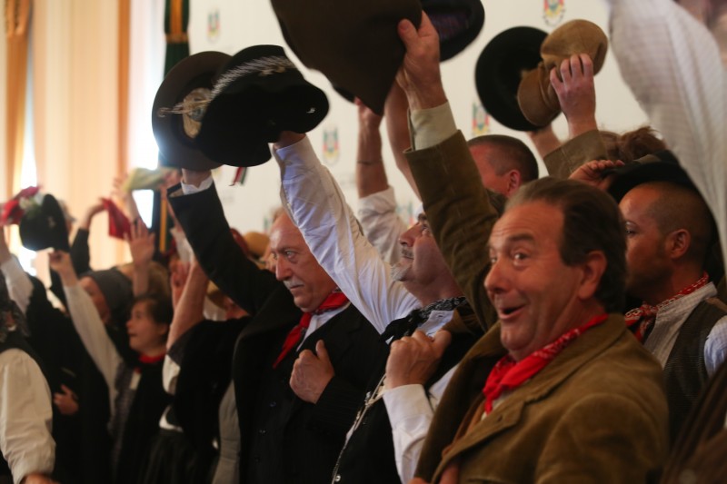 Os imigrantes italianos chegaram ao Rio Grande do Sul em 1875. Atualmente, o estado tem cerca de três milhões de descendentes do país europeu. Refazer as grandes rotas da imigração é um dos propósitos do grupo Le Arti Per Via, da cidade de Bassano Del Grappa, na região de Vêneto, na Itália. A partir deste fim de semana, artistas italianos vão percorrer o interior gaúcho e se apresentar em oito municípios. Antes da turnê, o grupo se apresentou no Palácio Piratini, nesta quinta-feira (19). O governador José Ivo Sartori e a primeira-dama, Maria Helena Sartori, participaram da solenidade.