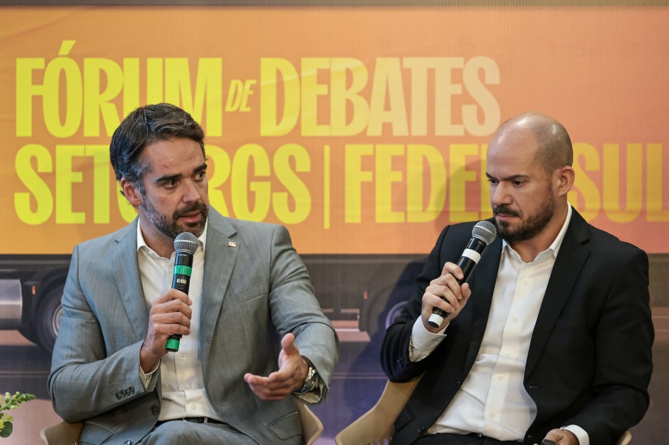 O governador Eduardo Leite participou, na tarde desta quarta-feira (25), do Fórum de Debates promovido pela Federação de Entidades Empresariais do Rio Grande do Sul (Federasul) e pelo Sindicato das Empresas de Transportes de Carga e Logística do Rio Grande do Sul (Setcergs), em Porto Alegre. O tema foram as concessões de rodovias estaduais. O encontro foi a terceira rodada de diálogo com representantes dos setores produtivo e de logística do Estado e também contou com a presença do secretário da Reconstrução Gaúcha, Pedro Capeluppi.