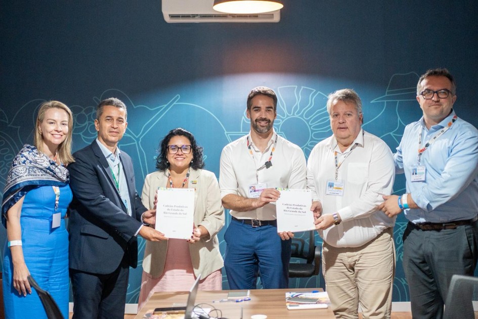 O governador Eduardo Leite entregou, na tarde desta terça-feira (11/11), durante a COP30, em Belém (PA), o Inventário Estadual de Gases de Efeito Estufa (IEGEE) e os Roteiros para Descarbonização de Cadeias Produtivas à Confederação da Agricultura e Pecuária do Brasil (CNA) e à Federação da Agricultura do Estado do Rio Grande do Sul (Farsul). A entrega ocorreu em reunião no pavilhão AgriZone, dentro da programação oficial da conferência. A ação marcou mais um avanço do Plano Rio Grande, a estratégia estruturante de reconstrução e adaptação climática do Estado.