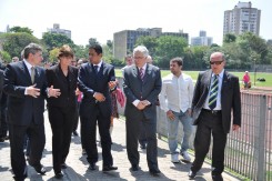 O secretário estadual do Esporte e do Lazer, Kalil Sehbe, e a presidente da Fundação de Esporte e Lazer do RS (Fundergs), Renita Dametto, acompanharam o ministro do Esporte, Orlando Silva, em uma visita ao Centro Estadual de Esporte e Lazer (CETE) nesta sexta-feira (07). O ministro ficou admirado com as quadras, os ginásios e a pista do espaço localizado no bairro Menino Deus, e garantiu que a área deve abrigar centros de excelências e se tornar um legado para o Rio Grande do Sul na preparação do Brasil para os Jogos Olímpicos de 2016. O vice-governador Beto Grill e o atleta de judô João Derly, formado no Cete, acompanharam a visita.