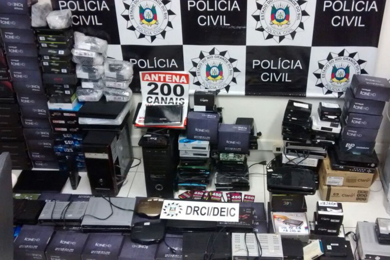 Policiais da Delegacia de Repressão aos Crimes Informáticos (DRCI/DEIC), junto com fiscais da Secretaria Municipal da Produção, Indústria e Comércio (SMIC) e funcionários de empresas de TV por assinatura, deflagraram, na manhã desta terça-feira (9), a Operação Card Sharing, visando ao cumprimento de cinco mandados judiciais em Porto Alegre. Centenas de materiais ilícitos como receptores de sinais, antenas e documentos foram apreendidos.