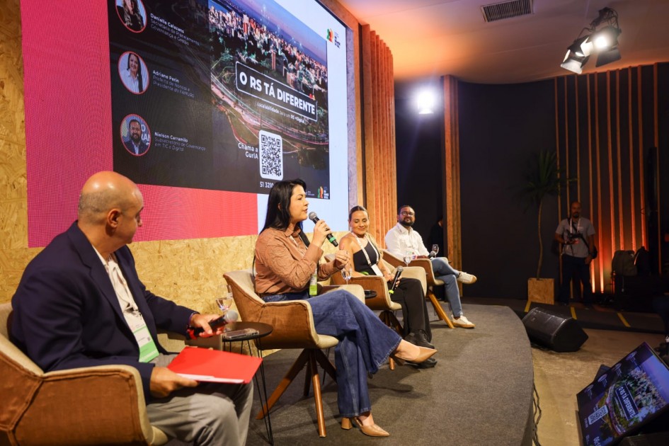 Participaram do painel a titular da SPGG, Danielle Calazans, o subsecretário de Governança e Estratégia de TIC e Digital da SPGG, Nielson Carramilo, e a prefeita de Nonoai e presidente da Federação das Associações de Municípios do RS (Famurs), Adriane Perin.