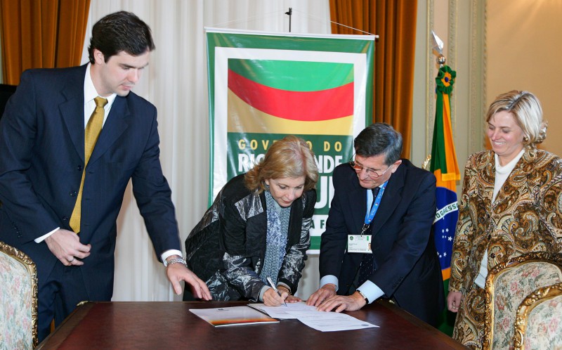 A governadora Yeda Crusius esteve reunida com o presidente da organização não-governamental italiana Centro Europa Scuola Educazione Società (Ceses), Giovanni Polliani, na tarde desta quarta-feira (17), no Palácio Piratini, para o estabelecimento de uma parceria que viabilizará o projeto de recuperação e valorização da cultura caingangue no Estado.