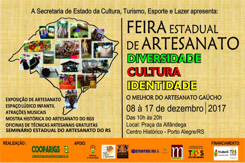 Intitulado Feira Estadual de Artesanato, Diversidade, Cultura e Identidade, o projeto é uma criação da Cooperativa dos Artesãos do Rio Grande do Sul (Cooparigs) e tem financiamento do Pró-cultura RS FAC, da Secretaria da Cultura, Turismo, Esporte e Lazer.
