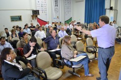 Dando continuidade ao cronograma de atividades para a capacitação dos servidores da Secretaria de Obras Públicas, Irrigação e Desenvolvimento Urbano (SOP), os técnicos dos escritórios regionais participaram de uma palestra com o diretor do Departamento de Obras, Odir Baccarin. O evento foi sediado no auditório da Fundação para o Desenvolvimento de Recursos Humanos (FDRH), na manhã desta sexta-feira (26).
