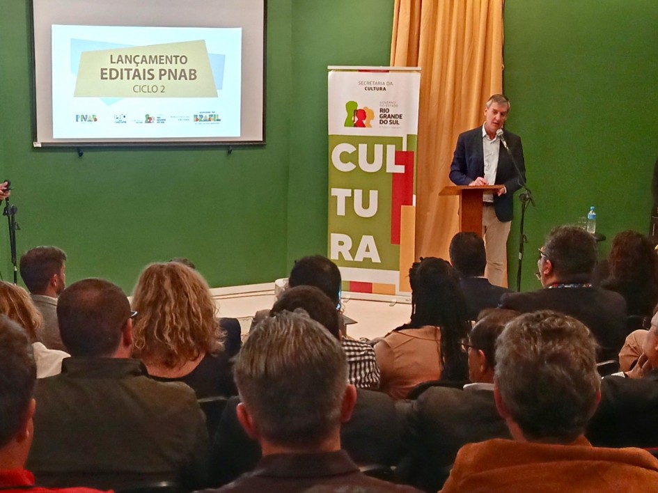Durante o evento realizado na manhã desta segunda-feira, Tavares reforçou a importância do Sistema Nacional de Cultura e lembrou que só é possível fazer o sistema funcionar porque existe uma política continuada que garante o financiamento e a responsabilização conjunta da gestão entre os entes da União, conformando um grande pacto federativo. Ele também mencionou a presença dos diversos integrantes do sistema, recordando que, no Rio Grande do Sul, todos os municípios aderiram à PNAB.