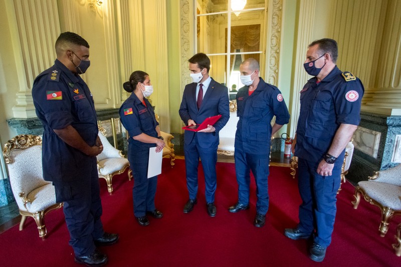 Alunos-soldados do CBMRS entregam convite de formatura ao governador e vice