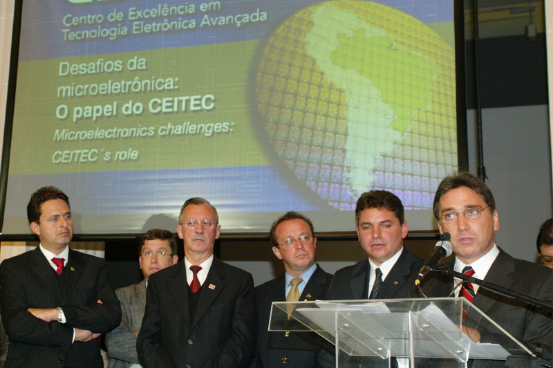 O governador Germano Rigotto destacou, hoje (31), na abertura do seminário Desafios da Microeletrônica: o Papel do Ceitec, no Grande Hall do Santander Cultural, a importância da parceria entre União, Estado, Município e setor privado para a concretização do projeto do Centro de Tecnologia Eletrônica Avançada (Ceitec) no Rio Grande do Sul. A soma de esforços transformará o Estado numa referência nacional para atração de investimentos internacionais dos setores de microeletrônica e tecnologia da informação, disse o governador. Para Rigotto, os setores da microeletrônica e da tecnologia da informação já estão no caminho do desenvolvimento no Rio Grande do Sul. Mas temos todas as condições de desenvolver mais ainda estas áreas, com o trabalho das universidades e dos diversos projetos já em andamento no Estado, observou. De acordo com o governador, o Ceitec vai alinhar o Estado com cerca de meia dúzia de outras iniciativas que nesta ponta tecnológica, operam em todo o mundo. Competitividade Rigotto disse que descerramos uma cortina que vai abrir novos cenários para a economia do Rio Grande do Sul, tanto na geração de conhecimento, quanto de postos de trabalho de elevada qualificação e significativa agregação de renda. Os benefícios se farão sentir também em diversos setores dessa cadeia produtiva. No momento em que começarmos a produzir chips, espero que isso ocorra já em 2006, a competitividade da indústria nacional de eletrônica e tecnologia da informação ganhará estatura no mercado internacional e desfrutará de grande competitividade pela redução de custos de componentes. O ministro da Ciência e Tecnologia, Eduardo Campos, afirmou que o Ceitec será fundamental na construção de uma política de microeletrônica brasileira, com efeitos positivos no crescimento da indústria e na balança comercial, com a redução das importações de microeletrônicos. Previsto para operar integralmente, a partir de 2006, num complexo na Lomba do Pinheiro, em Porto Alegre, o Ceitec vai produzir chips e será o maior centro do gênero na América Latina. O projeto, orçado em R$ 180 milhões, tem como principal parceiro a Motorola, que doou equipamentos avaliados em R$ 12 milhões. Participam da abertura do seminário os secretários da Ciência e Tecnologia, Kalil Sehbe - ele também preside o Conselho Superior do Ceitec -, e do Desenvolvimento e dos Assuntos Internacionais, Luis Roberto Ponte, o diretor-presidente do Ceitec, Sérgio Souza Dias, executivos da Motorola, o prefeito de Porto Alegre, João Verle, empresários, universitários e especialistas em microeletrônica. O seminário se encerra amanhã (1º).