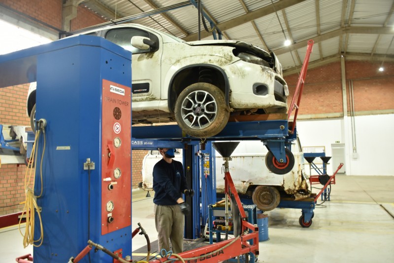 - Dentro dos depósitos, veículos destinados à reciclagem são preparados com a descaracterização do chassi e das placas do veículo;