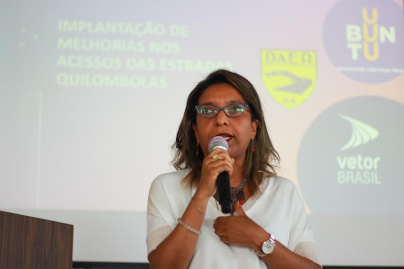 A ação de inclusão integra o projeto “Melhorias nas estradas de acesso às Comunidades Quilombolas”, da superintendente de Programação Rodoviária (SPR) do Daer, engenheira Eliane dos Santos. Entre 1,4 mil candidatos de todo o país, Eliane foi uma das 100 para participar do programa Ubuntu 2023, de formação de lideranças negras. Durante a apresentação do projeto, ela destacou a importância de o Estado estar desenvolvendo iniciativas de inclusão que envolvam essas comunidades. “Tirar as comunidades quilombolas da invisibilidade é o maior ganho desse projeto e um primeiro passo. Os próximos serão desenvolver planejamento para colocar placas de sinalização nos territórios quilombolas e incluir as demais comunidades do Rio Grande do Sul no mapa”, observou.