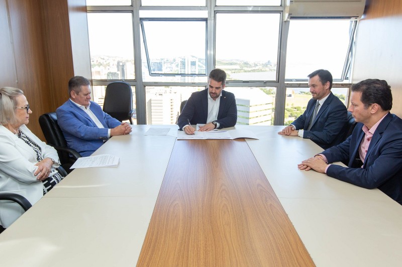 A assinatura ocorreu no Centro Administrativo Fernando Ferrari (Caff), na capital, com a presença do governador Eduardo Leite e do procurador-geral de Justiça, Fabiano Dallazen. A iniciativa vai permitir o reforço da estrutura hospitalar em quatro regiões do Estado.