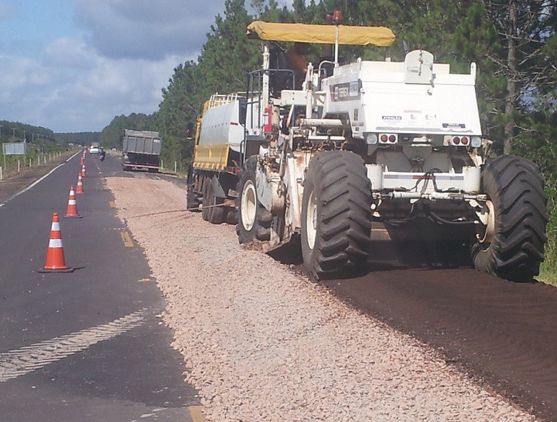 Para a renovação, a EGR está utilizando uma máquina recicladora. O equipamento permite que todo o material removido da rodovia seja reaproveitado, após a mistura com mais brita. A recicladora evita a produção de resíduos, o que reduz o passivo ambiental, além de poupar à empresa os custos de transporte desses resíduos.