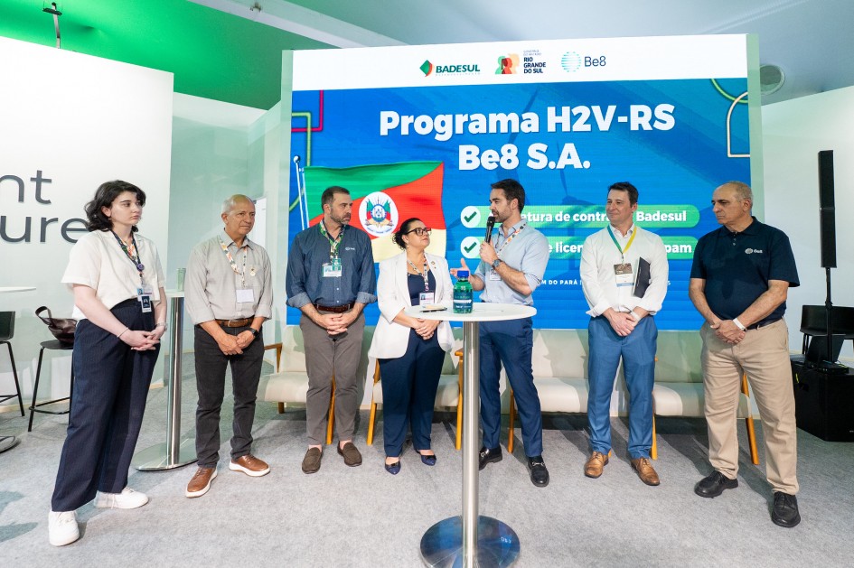 O governador Eduardo Leite formalizou, nesta quarta-feira (12/11), durante a COP30, em Belém (PA), a assinatura do contrato entre o governo do Estado, por meio do Badesul, e a empresa Be8 S.A., para implantação do primeiro posto de abastecimento de hidrogênio verde (H₂V) do Rio Grande do Sul. No mesmo ato, a Fundação Estadual de Proteção Ambiental (Fepam) entregou a licença ambiental, autorizando a produção do novo combustível.