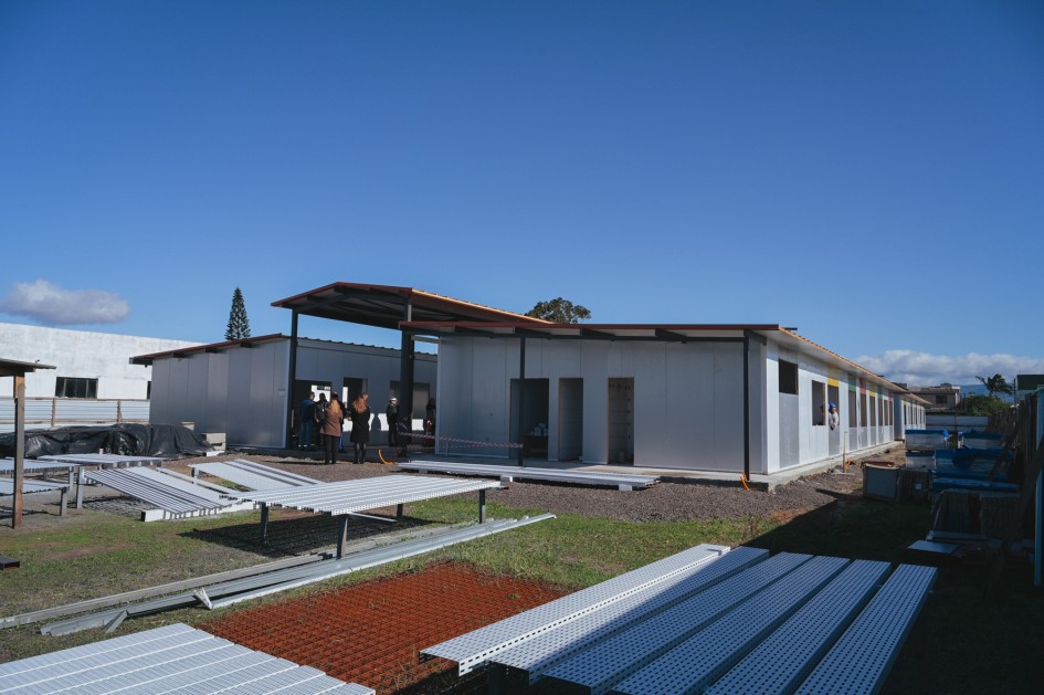O projeto utiliza o sistema de construção a seco, com estruturas modulares e paredes de chapas de aço do tipo sanduíche, que favorecem o conforto térmico e a eficiência energética. O modelo permite maior agilidade na execução e menor impacto ambiental.