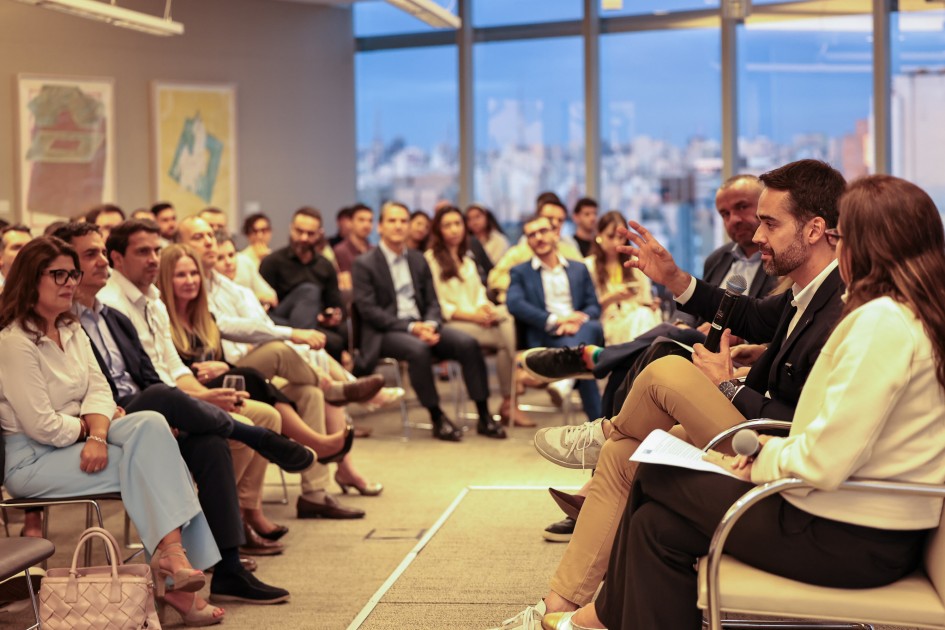 O encontro reuniu diretores do banco, CEOs e líderes empresariais para uma conversa com o governador mediada por três diretores da instituição: Paula Moreira, Pedro Dias Ferreira e Rafaella Lamim.