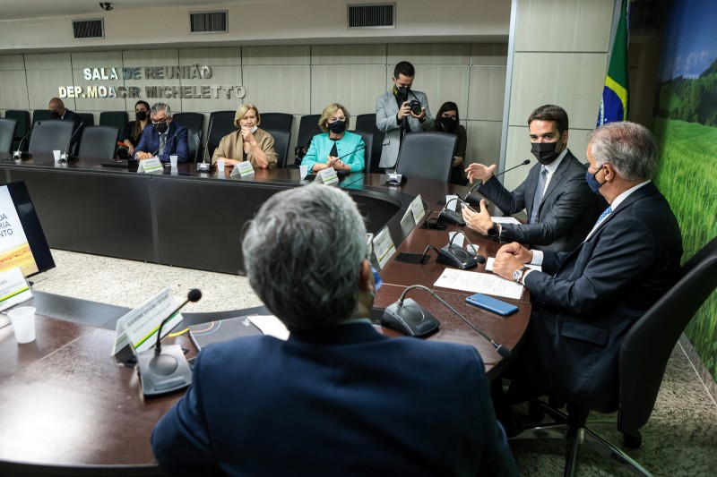 Em Brasília na manhã desta terça-feira (8/2), o governador Eduardo Leite se reuniu com o secretário executivo do Ministério da Agricultura, Marcos Montes. A ministra Tereza Cristina participou por videoconferência porque recebeu diagnóstico positivo para Covid-19 na noite da segunda-feira (7/2).