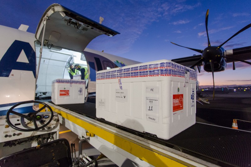 Logo depois do descarregamento no aeroporto, as vacinas foram levadas à Central Estadual de Armazenamento e Distribuição de Imunobiológicos (Ceadi), na capital, para separação. Na sequência, a Brigada Militar e a Polícia Civil entregarão os imunizantes para as 18 CRS em até 24 horas.