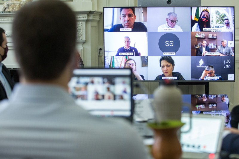 O vice-governador Ranolfo Vieira Júnior, o secretário de Planejamento, Governança e Gestão, Claudio Gastal, o procurador-geral do Estado, Eduardo Cunha da Costa, e a prefeita de Dois Irmãos, Tânia Terezinha da Silva, participaram do ato virtual.