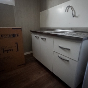 As unidades habitacionais temporárias estão sendo instaladas em dois terrenos: um com cinco módulos, no bairro Palmas; e outro com 25, no bairro São José. Cada uma possui 27m² e é composta por dormitório, sala e cozinha conjugadas e banheiro.