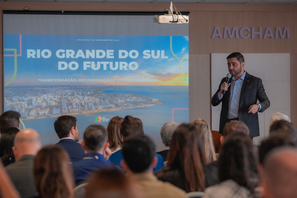 O vice-governador Gabriel Souza realizou uma análise do desenvolvimento socioeconômico e dos desafios estruturais do Rio Grande do Sul durante o Fórum RS Avança, promovido pela Amcham Brasil (Câmara Americana de Comércio para o Brasil), nesta quinta-feira (6/11), em Porto Alegre. O evento reuniu mais de 100 líderes empresariais de companhias brasileiras e multinacionais para debater estratégias que impulsionam a competitividade e o desenvolvimento sustentável do Estado.