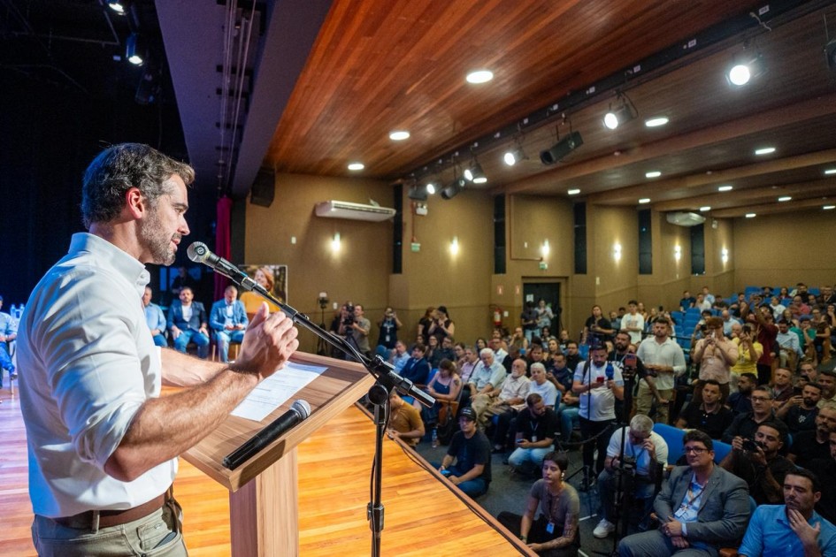 O governador Eduardo Leite anunciou, nesta segunda-feira (16/3), a deliberação do Comitê Gestor de Ativos para doação com encargos ao município de São Leopoldo da área onde está localizado o Parque do Trabalhador, pertencente ao Estado. O anúncio foi realizado em evento em São Leopoldo, com a presença do vice-governador Gabriel Souza, da secretária de Planejamento, Governança e Gestão, Danielle Calazans, e do prefeito Heliomar Franco.