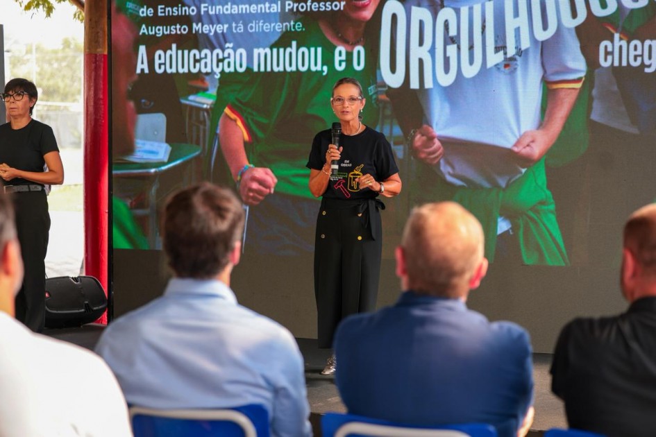 O governador também reforçou que a transformação na Augusto Meyer reflete um movimento mais amplo em todo o Estado. “Essa transformação que a gente vê aqui é a mesma que está acontecendo em centenas de escolas no Rio Grande do Sul. Até o final deste ano, vamos chegar a mil escolas transformadas, com cerca de R$ 1 bilhão em investimentos só neste segundo mandato”, destacou.