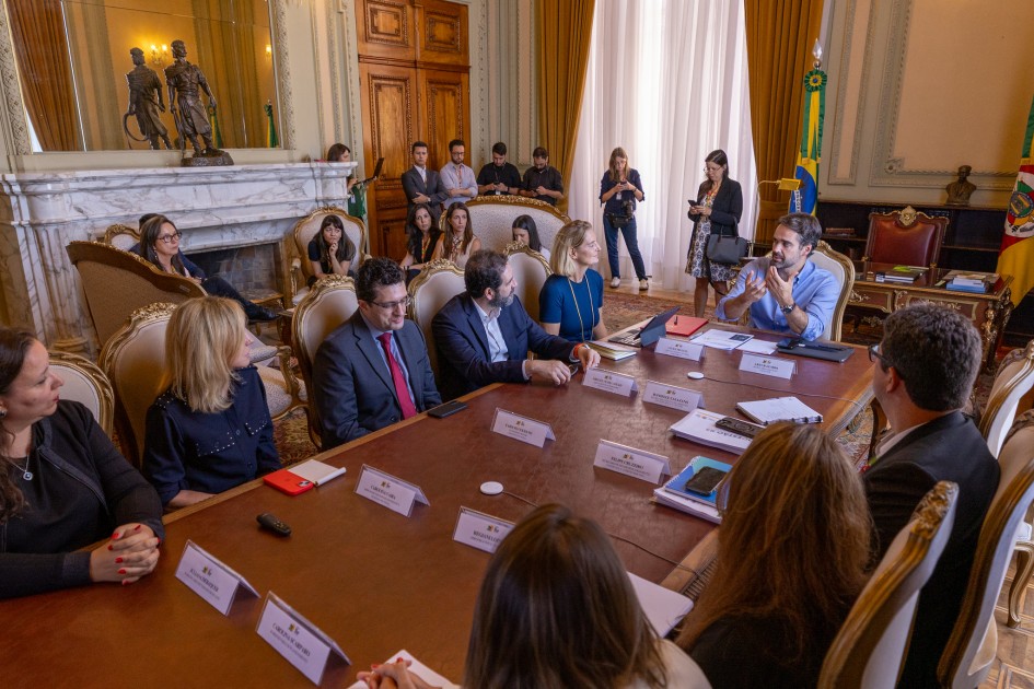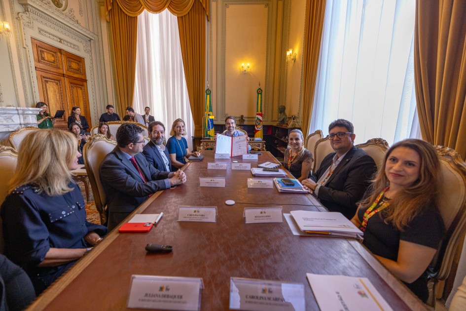 O governador Eduardo Leite apresentou, nesta terça-feira (3/3), no Palácio Piratini, dois dos principais pilares da agenda de modernização e sustentabilidade fiscal: o Progestão RS e o Pró-Resiliência. Juntos, os programas mobilizam recursos de US$ 415 milhões, consolidando uma estratégia integrada de eficiência administrativa e fortalecimento da capacidade de resposta do Estado. Participaram do ato a diretora do Banco Internacional para Reconstrução e Desenvolvimento (Bird) para o Brasil, Cécile Fruman, além de outros técnicos da comitiva do banco.
